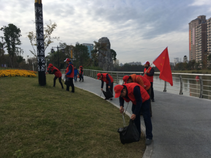 为大力弘扬雷锋精神,助力文明城市创建工作,不断提升干部职工与环境和谐相处的精神境界,近日,武陵区卫计执法局组织全体机关干部开展了“关爱穿紫河 环保志愿行”志愿服务活动。 活动当天,全体机关干部头戴小红帽、身穿红马甲,拿着塑料袋、火钳对穿紫河沿线的草丛、道路旁的卫生死角、路边电线杆进行全方位的清扫。一边是志愿者们热火朝天的清扫活动,一边是大家你一言我一语的批评与反省,路旁的碎纸屑、包装袋、烟头、槟榔渣等都被细心的志愿者们一一捡进了随身携带的垃圾袋中,电线杆、休息桌椅上乱贴的小广告也被大家一点点的撕扯清理干净。通过每个志愿者的努力,垃圾袋很快就被装满了,大家脸上都洋溢着欢快的笑容。 通过此次志愿服务活动,武陵区卫计执法局的志愿者们“动起手、弯下腰”,用实际行动宣传环保理念,爱护环境卫生、树立环保意识的先进理念更是深植每个人心中。